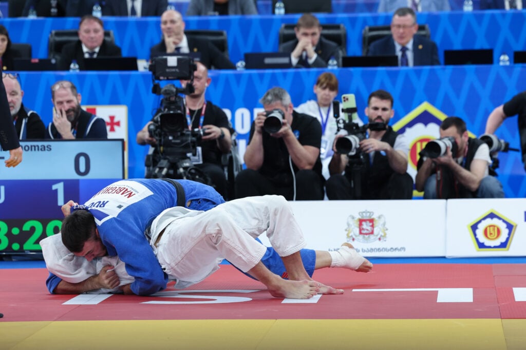 Lasha Bekauri, gold backpatch firmly in place, had a dynamic run to the semi-final but there he met Nemanja Majdov (SRB) who seemed to be a man on a mission in Tbilisi. Majdov took full control at 3m59s and with only that one short second left on the clock he arrmlocked the Georgian. The stunned crowed were immediately silent; the dream was over.