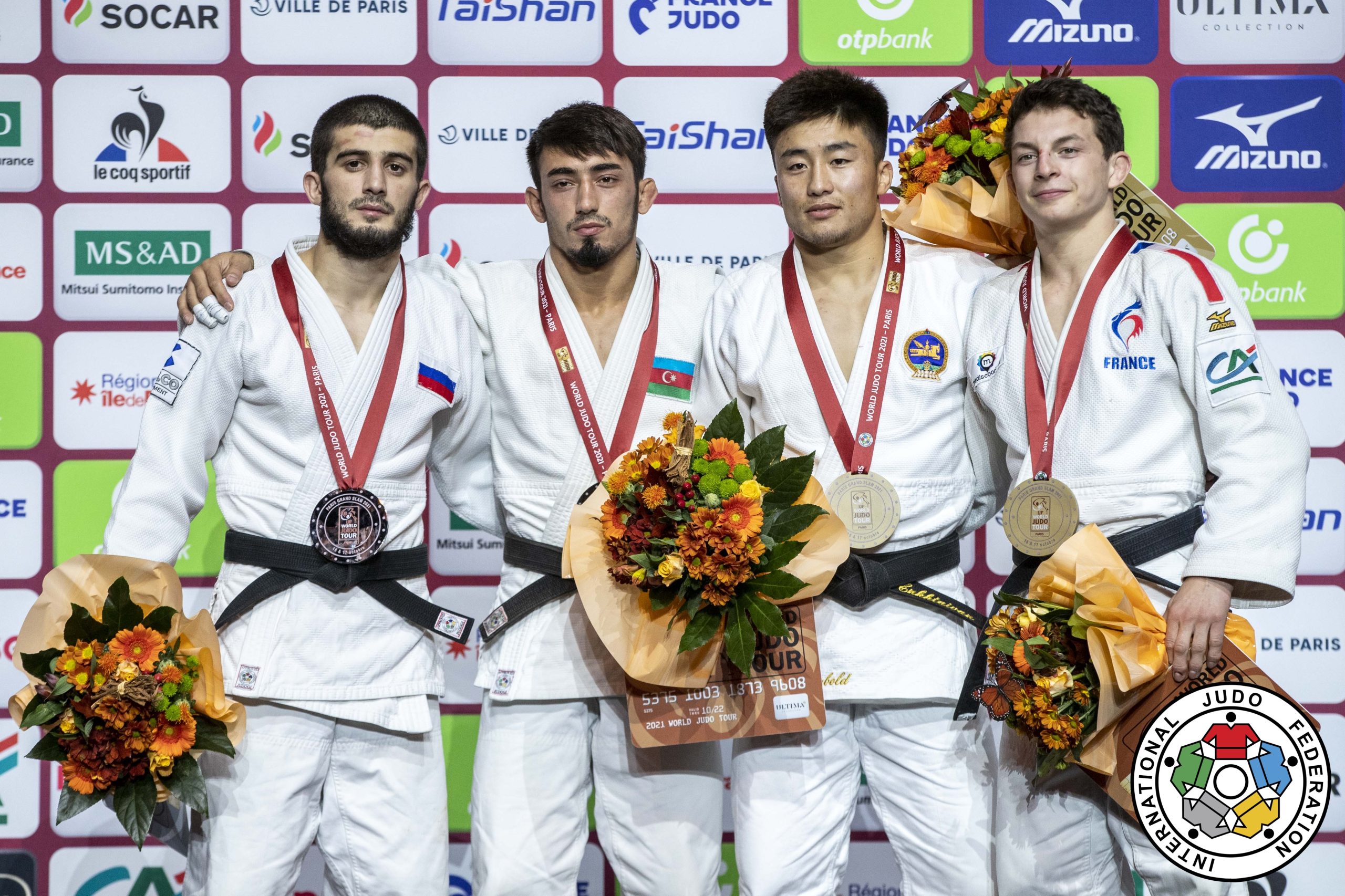 Stepping in to the Bercy Arena for the first time must ran as one of the most can daunting tasks in judo, especially when your opponent is French. In his opening contest Aghayev faced Jolan FLORIMONT (FRA) who was making his fourth appearance at the Paris Grand Slam. Aghayev found himself in some difficulty, collecting two shidos as the contest went into golden score. Having come close to losing the contest Aghayev eventually came up with a beautiful left sided yoko otoshi for ippon. In the quarter-final came up against the promising KOGA Genki (JPN). Once again the Azeri went to go-to technique, yoko otoshi, to get the winning score and to take his place in the semi-final. Aghayev again found himself with two shidos and struggling in golden score, this time against ENKHTAIVAN Sumiyazabar (MGL) when he launched a speculative sode tusri komi goshi for waza ari. In the final Aghayev overcame Ramazan ABDULAEV (RUS) throwing the Russian for ippon after 2:13. A truly amazing end to what for Aghayev will surely be the most memorable of days. The bronze medals were won by Romain VLADIER PICARD (FRA) and ENKHTAIVAN Arunbold (MGL).