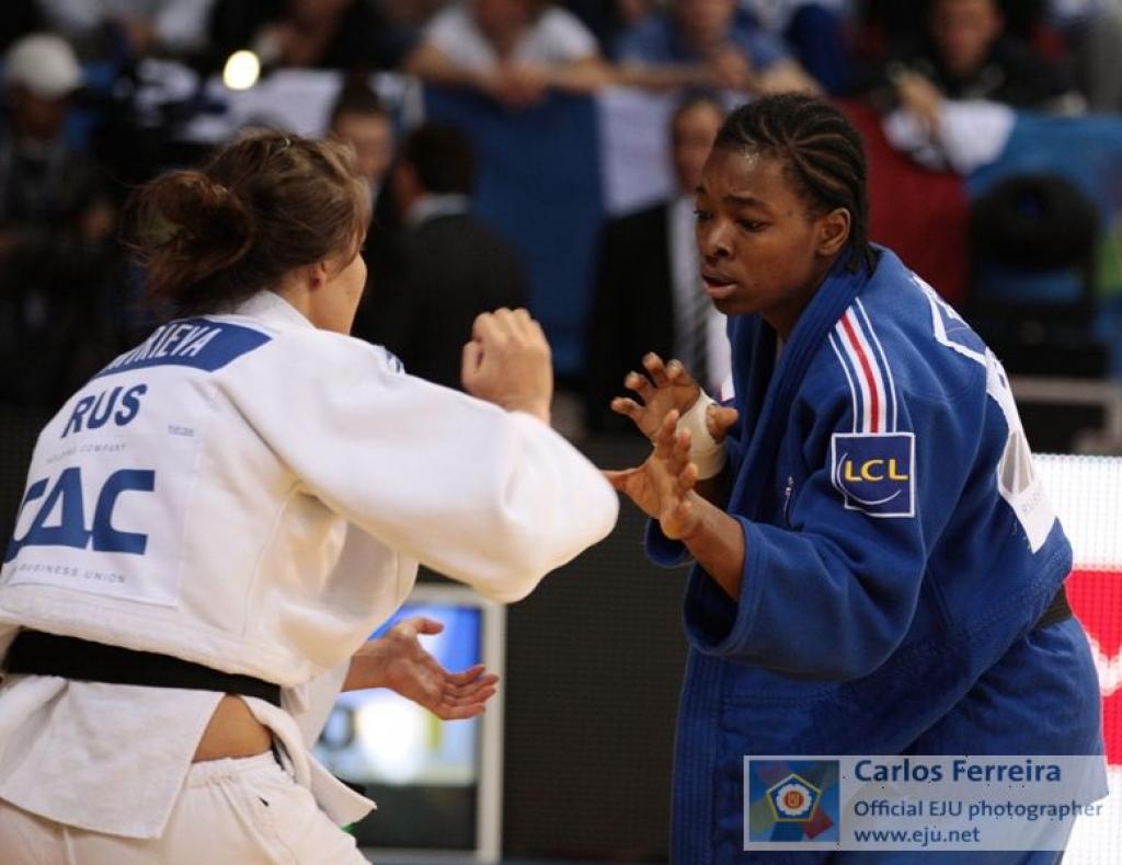 In the final U78kg two French had the privilige to enjoy an all French final for the first time. It was again Audrey Tcheumeo who decided the match in her advance and won her first European medal. A gold medal while making her debute. New possibilities now the EJU follows the IJF in their decission to allow two athletes from the same country. Also it shows how strong France is in this category. Although at European Championships France not always took the title. It was four years ago that Stephanie Possamai won the title. In between France, Germany, Spain and Hungary won the title. Reiging European Champion Abigel Joo (HUN) was not able to continue her success. She lost in the semi final against Louette and lost her bronze medal bout against Ana Velensek (SLO). Velensek was defeated in the semi final by Tcheumeo who was today’s strongest.