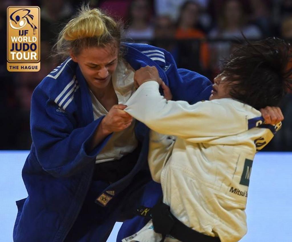 It is a mere 10 weeks since Daria BILODID (UKR), current European champion at -48kg, tasted defeat at the hands of world and Olympic bronze medallist Otgonsetseg GABLADRAKH (KAZ). The 17-year old Ukrainian was sent crashing out in round three of the world championships in Budapest that left her visibly shaken and hugely disappointed. It is to the young Bilodid’s credit that not only was she able to refocus quickly but, just as importantly, she avenged with steely determination her loss to world ranked number two Galbadrakh at the first opportunity. Bilodid achieved this triumph by taking the gold medal in the -48kg category on the opening day of The Hague Grand Prix and, in the process, her first ever IJF World Tour gold medal, leaving Galbadrakh in second place.