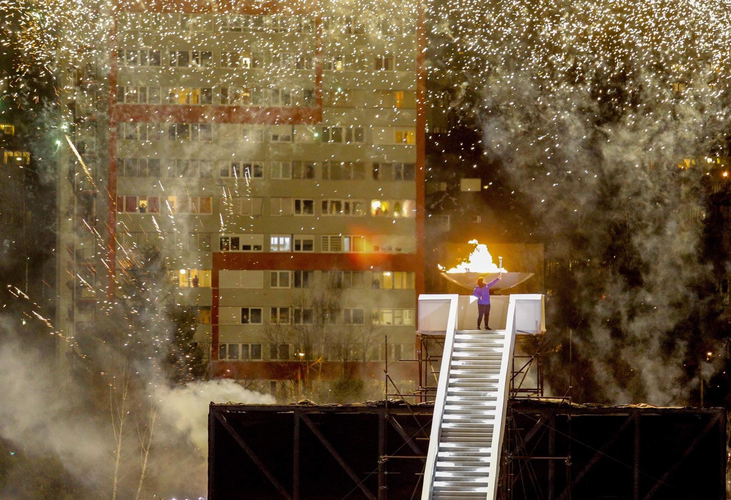 World medallist, Larisa CERIC (BIH), had the honour of lighting the Olympic flame in the Asim Ferhatović Hase stadium in Sarajevo for the opening ceremony of the Winter European Youth Olympic Festival.