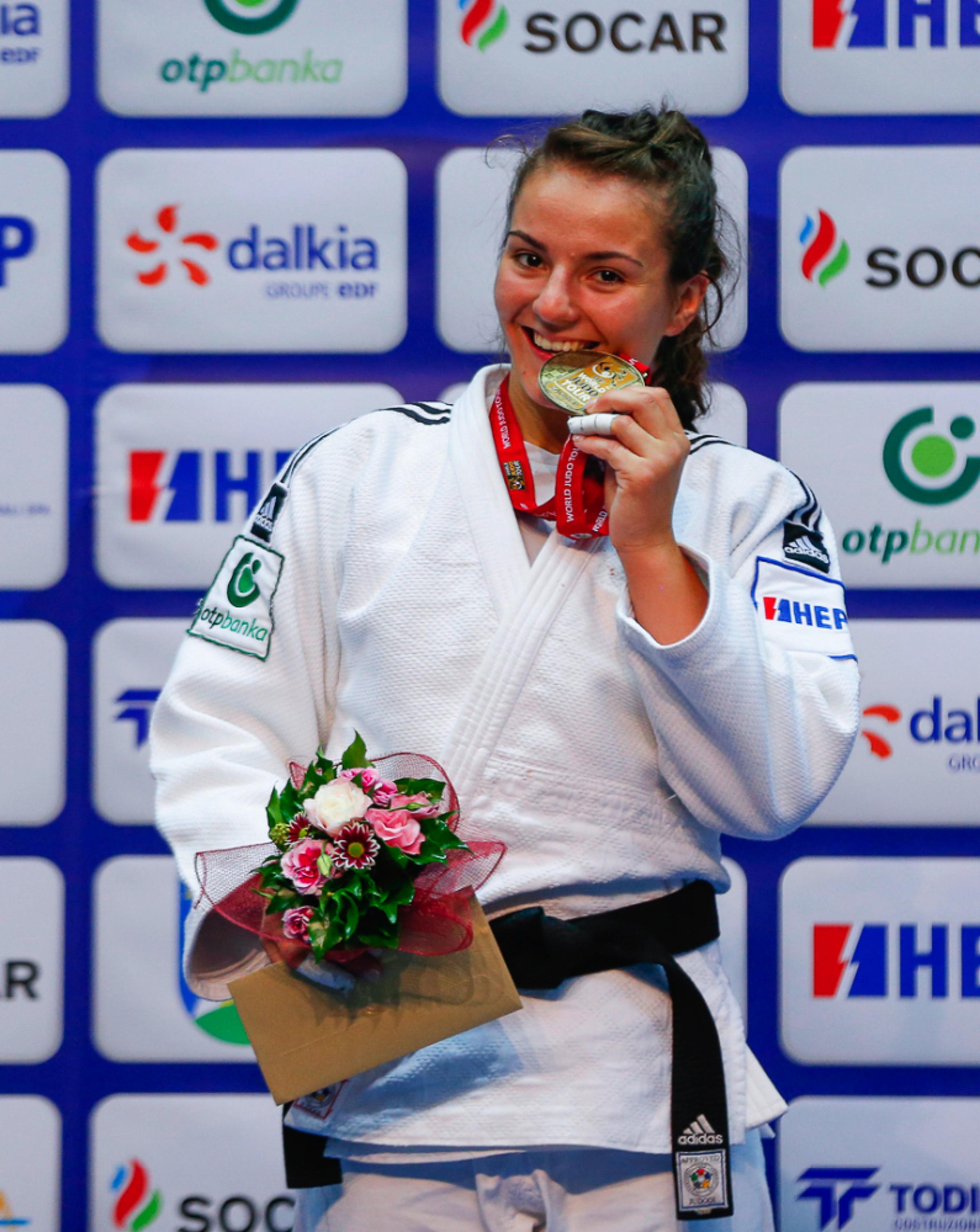 Despite being hampered by a knee injury, number two seed Barbara MATIC (CRO) held on to take gold in the -70kg category on day two of the Zagreb Grand Prix. After a first round bye Matic faced Michaela POLLERES (AUT). Not since the junior European championships in 2014 had the pair faced each other, Matic winning on that occasion and it was again today who emerged as winner.