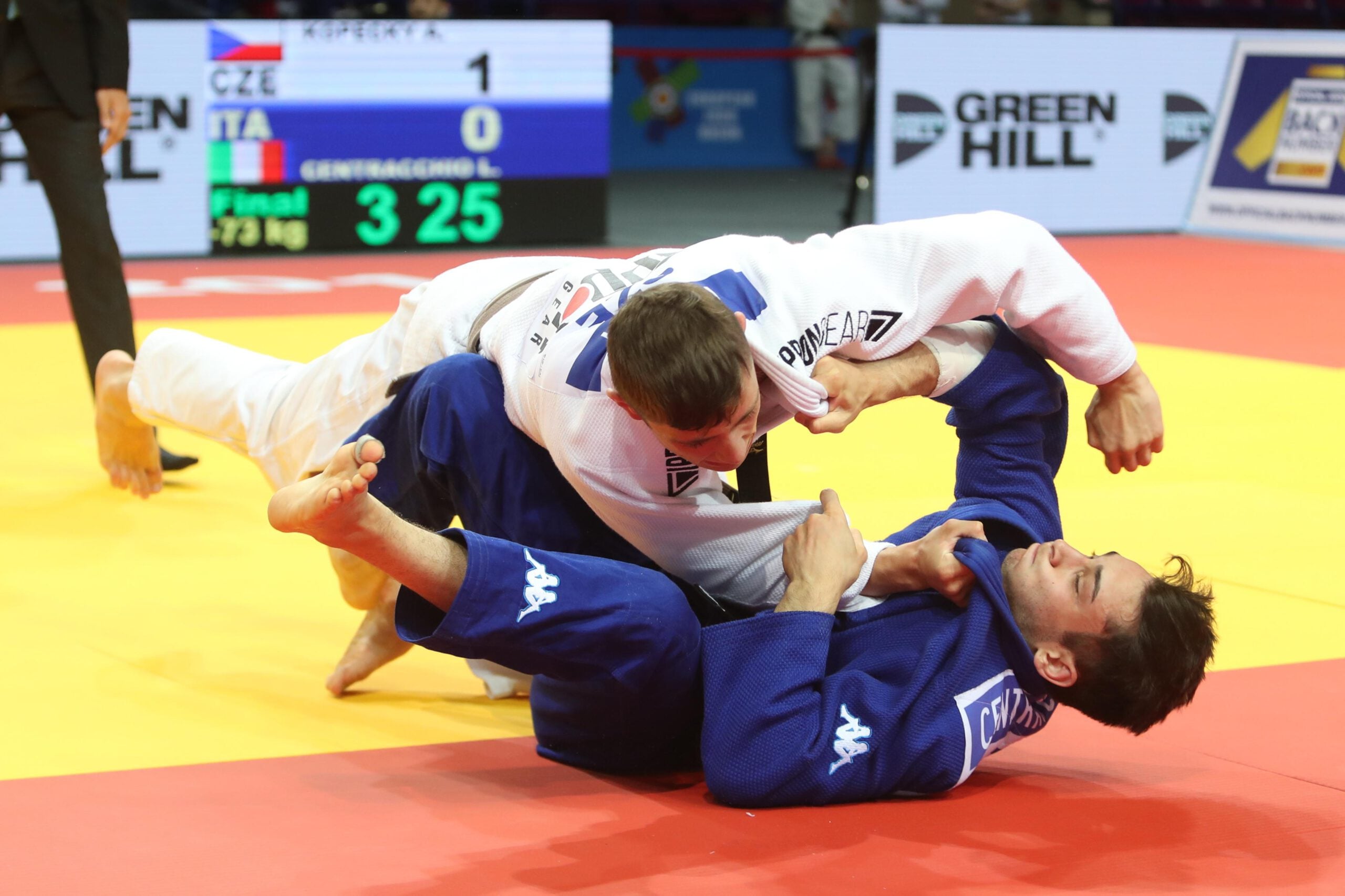 Luigi CENTRACCHIO had extra motivation this year following his sister, Maria’s latest achievement of a bronze medal in the Senior European Championships in Minsk. He had good preparation this year, taking a gold medal in the Teplice Cadet European Cup and made his way convincingly to the final. Unfortunately it wasn’t meant to be on this day and the gold medal went to the Czech #1 seed in the -73kg category, Adam KOPECKY.