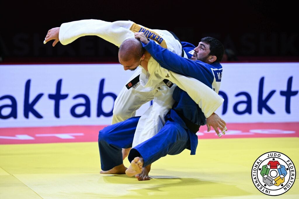 Great champions are not always at their peak but they reveal themselves in difficult moments. Bronze was not the objective for Zelym Kotsoiev (AZE), yet by the end of a demanding day it carried real value. To reach the podium in the -100kg category, he had to overcome Adam Sangariev (RUS). For much of the contest, the Olympic champion struggled to find his rhythm. Sangariev offered few openings but Kotsoiev was not at his explosive best either. With the bout heading towards a narrow conclusion, he found perfect timing in the closing seconds, launching a powerful maki-komi for ippon.