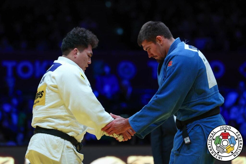 Europe’s first chance for gold came in the electrifying –100kg final, as Ilia Sulamanidze (GEO) stepped out to face home favourite Dota Arai (JPN). The Tokyo Metropolitan Gymnasium erupted, you could feel the weight of expectation in the air. Arai opened aggressively, launching a series of enormous o-uchi-gari and uchi-mata attempts that forced Sulamanidze dangerously close to conceding. But champions recover fast and Sulamanidze proved exactly why he belongs among the world’s elite. In the next exchange, he initiated an o-soto-gari, prompting Arai to evade but the Georgian was already two steps ahead. He linked into a perfectly executed o-soto-otoshi, sending Arai cleanly onto his back for ippon. The crowd fell silent; Europe roared. Georgia had stolen Japan’s gold.
