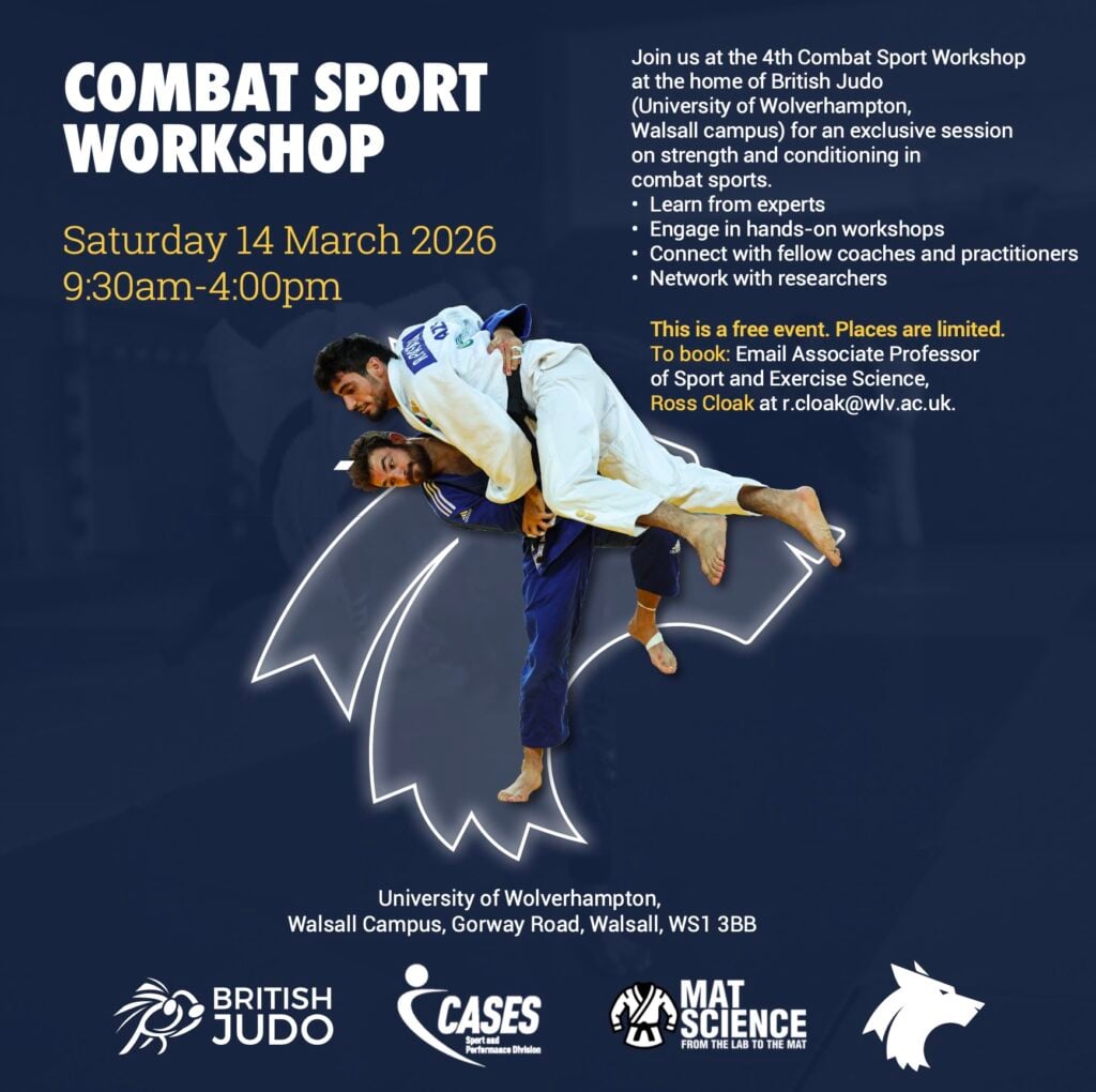 British Judo invites coaches and practitioners to attend the 4th Combat Sport Workshop at the home of British Judo, hosted at the University of Wolverhampton, Walsall Campus. The exclusive session, focused on strength and conditioning in combat sport, will take place on Sunday, 14 March 2026, from 9:30am to 4:00pm.