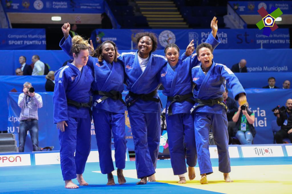 RED STAR CLUB DE CHAMPIGNY was lead by World bronze medallist, Amandine BUCHARD who hadn’t conceded a contest in the preliminaries. The -52kg athlete continued her winning streak in the final against Astride GNETO after four minutes of golden score, giving her team that much needed first win. The -52kg athlete told us, “My club is very important to me, they have been there for me since 2014 through my good and bad moments and I wanted to give something back. I can also use it as preparation for major individual tournaments. It is always hard to fight against team mates, we train together and know each other very well. It was hard to manage, they came with so many people and this can sometimes affect results, plus she (A. GNETO) is very physical fighter. After eight minutes of fighting I knew that I must stay focussed in my mind and wait for the perfect moment. We are both in qualification for the Olympic Games so it was really important for me to win today.” Next up was Nekoda SMYTHE-DAVIS, who like BUCHARD, had proven her worth in this finalist team. With an aim to finish this competitive year on a high following her World silver achievement, SMYTHE-DAVIS went in to this final on the offence but was defeated by the eldest GNETO sister, Priscilla. Triple World Champion, Clarisse AGBEGNENOU stepped on the tatami against Manon DEKETER, the ETOILE SPORTIVE BLANC MESNIL athlete scoring a waza ari first. With an immediate change in pace, AGBEGNENOU threw her opponent backwards for a solid ippon. When speaking of competing against her team mates in the final, Clarisse explained, “Yes it was hard but we knew when we came here there were a lot of teams from France, but especially hard in the final as they are a big team and very strong. It is also the end of the year when we are all very tired and still have the Masters to compete in. This tournament was important to us because we wanted to win for our club, for our city and for our government.” Clemence EME of the Champigny club went head to head with Margaux PINOT in a title contest, one more win could bring it home for RED STAR CLUB DE CHAMPIGNY. Both athletes were on even footing and kept the spectators in anticipation but a propelling seoi nage from EME stole the show and of course the Europa League title. With the title ultimately in hand, Sama Hawa CAMARA had the pressure lifted when going against Madeleine MALONGA. Fortunately this was the case for CAMARA, as MALONGA did not end her winning streak of the day, making the end result 3-2. Coach, Barbara HAREL, with two European titles of her own has plenty experience to pass on to the club. “It is important to have so much spirit in the club, to fight and to win together. We couldn’t compete in the French Teams Championships as it was only two weeks before the European Championships so it was important for us to win today. Amandine and Clarisse were both in preparation for the European Championships but now we also have a new member, Nekoda (SMYTHE-DAVIS). We are so happy she has joined us, working together and with new people is always great, they all learn from eachother and it is good to have that development as a team. Now we are all happy to be together and to win together as they have a long history with each other.” By Thea Cowen