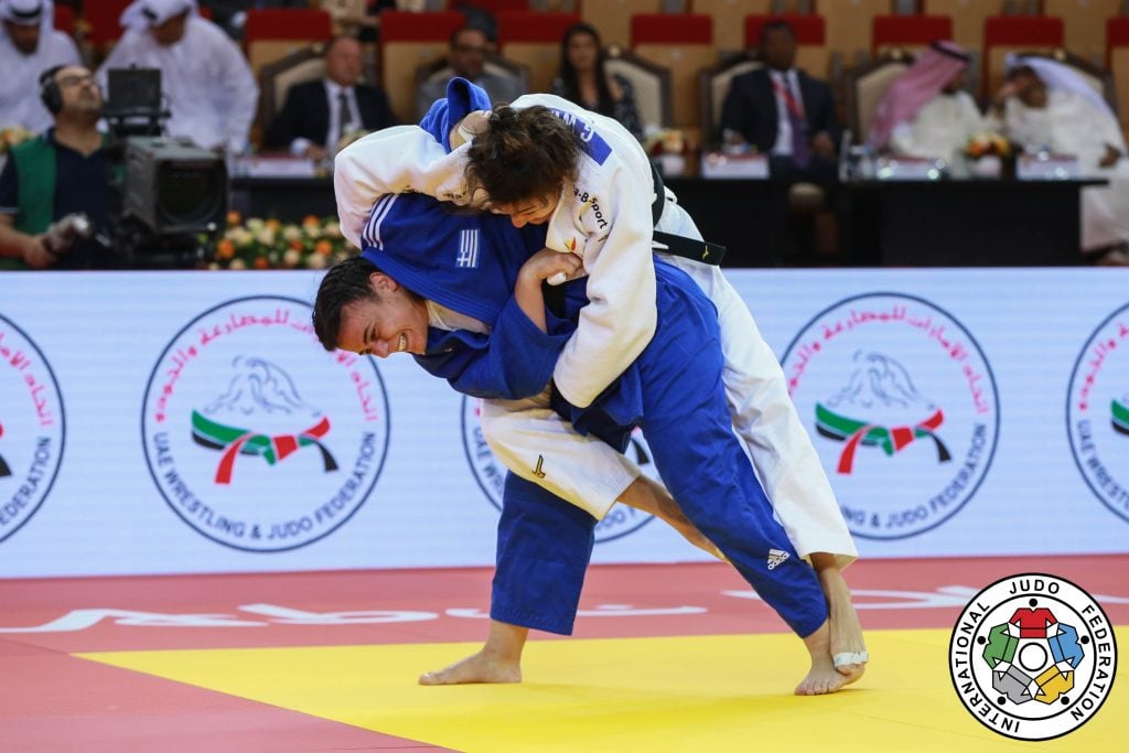 The firsts kept rolling for the remaining gold medallists. Elisavet TELTSIDOU of Greece has been competing in grand slam events since 2014 as an 18 year-old, and has earned her points with grand prix medals but this was something special today. Though she was unable to take the gold with a winning score, it mattered not, this was a turning point in her 24th grand slam appearance. Finally it was time for her to take centre stage and have her anthem heard.