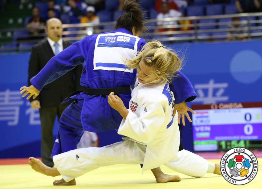 For a long time Brigita Matic CRO has had to compete in the shadow of her older and hugely successful sister junior world champion Barbara Matic. Today the “little sister” (Brigita actually competes in a heavier weight category) won gold in the -78kg category on the final day of the individual competition at the Youth Olympics in Nanjing, China. Matic had a bye in the first round and so began her campaign with a quarter final win over Elvismar Rodriquez VEN. The pair had faced each other once previously at the Cadet World Championships in Miami exactly one year ago. The result was the same with Matic coming out victorious. This brought about a semi-final match up for the 18 year old Croatian with the promising 2012 African Cadet Champion Unelle Snyman RSA that Matic won by ippon to set up an all-European final with 16 year old Aleksandra Samardzic BIH. The final was a close one, Samardzic conceding two shidos, Matic just the one to give the Croatian the gold.