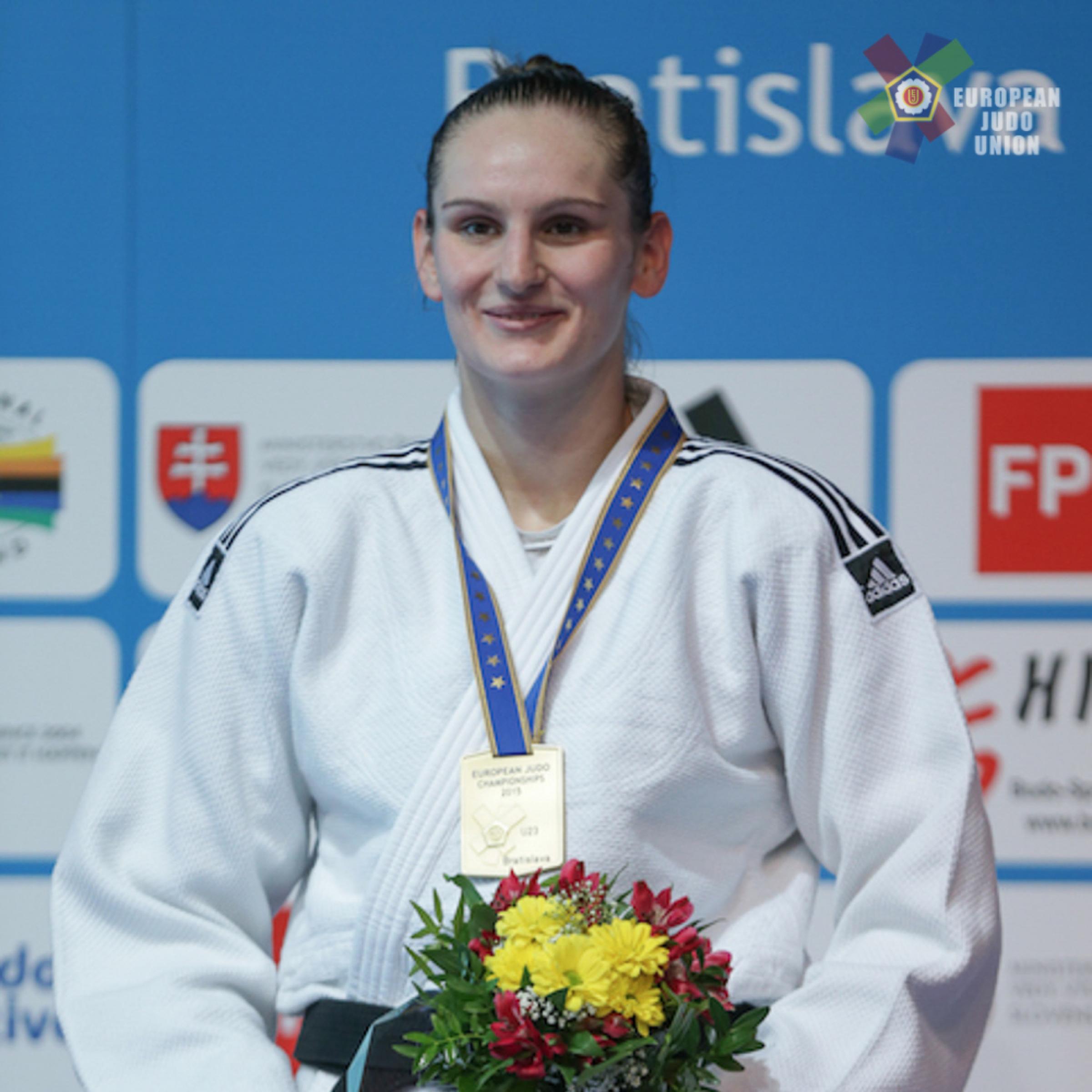 Gold medalist at -78kg: Klara Apotekar (SLO) It is an amazing feeling because this is my first gold medal ever. I am always second. Silver is not bad, but I am always a little bit disappointed because I want to win gold. The silver medal at the World Championships was more important, but this medal is special for me. I have never won against Brigita Matic before, and this was the rematch of the World Championships final. I wanted to win against her so much and I am happy to beat her today. I was a little bit sick the last three days, but during the first fight I realised I can win a medal today. |
