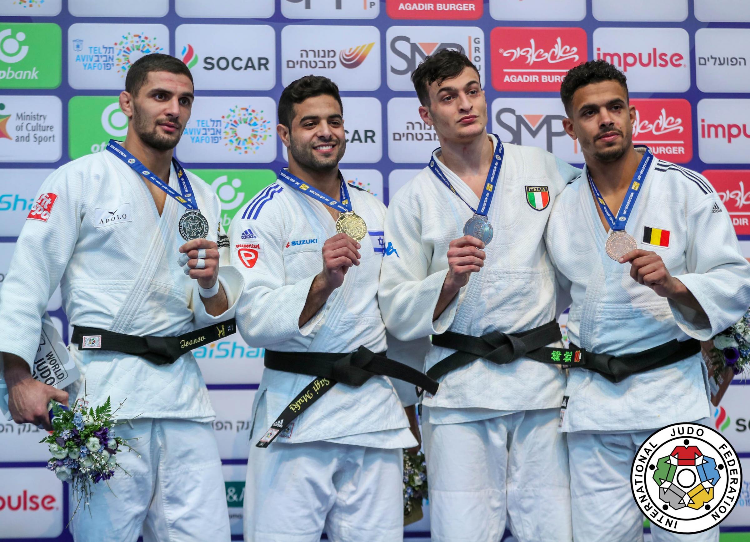 Israel’s success on the opening day (two gold and one silver medal) of the first ever Tel Aviv Grand Prix has understandably given the hosts plenty of reason to celebrate. Perhaps inspired by this, Sagi MUKI (ISR), ensured that the party atmosphere will go well into day three after he brought his cheering fans to their feet with his stunning gold medal winning performance in the -81kg category. The expectation for Muki to perform and deliver was tangible. The centre tatami was the point of focus and each time Muki stepped up he provided the entertainment, the excitement and ultimately the prize.