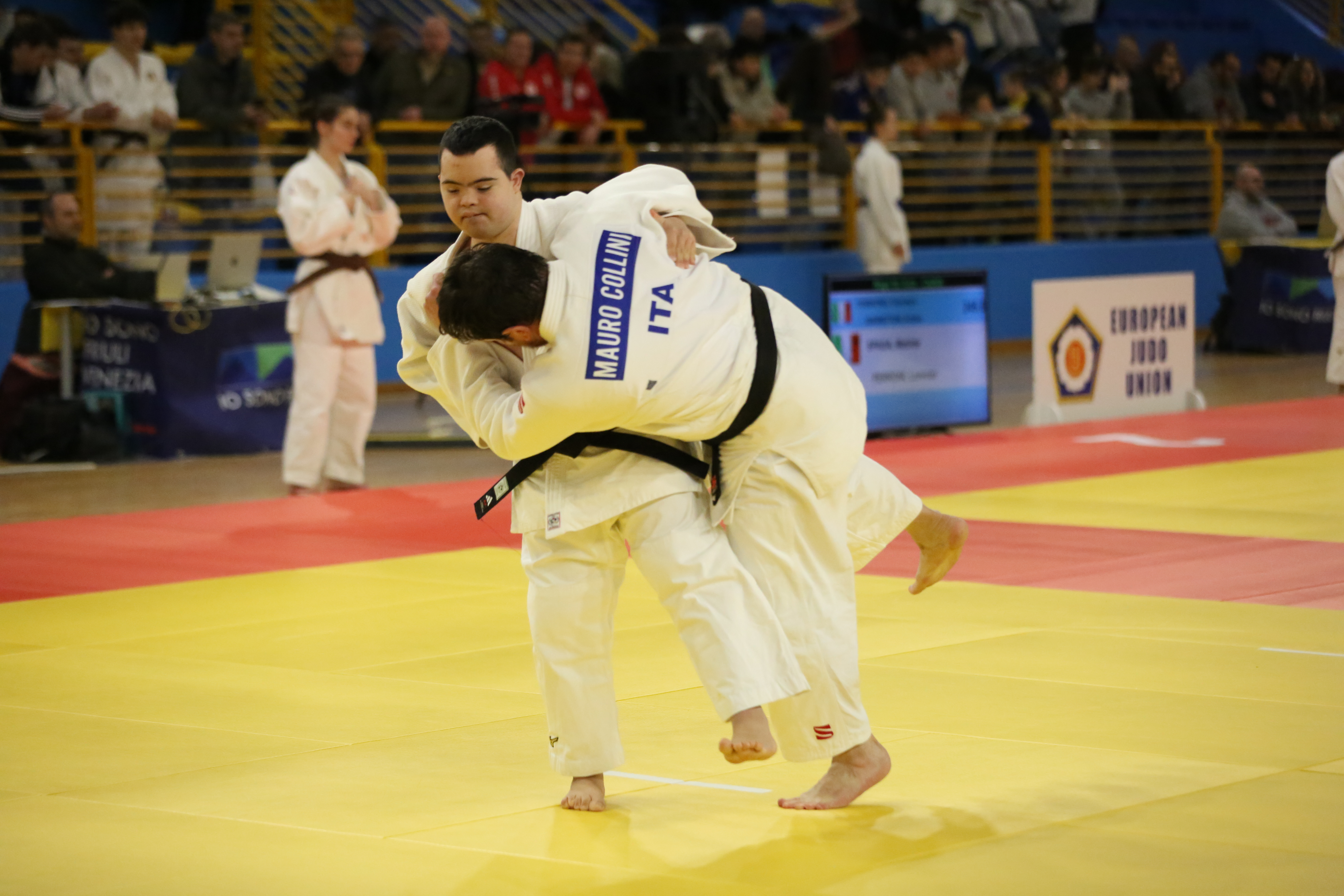 The day was dedicated to the EJU Kata Tournament, the opening stage of the EJU Kata Tour, a European circuit comprising eight events. A total of 74 pairs and around 30 judges from 17 nations competed on the tatami, delivering a technical level of outstanding international quality. The official opening ceremony was enriched by a performance from the children’s choir of Rosmini Primary School, who sang the Italian national anthem, the European anthem and Heal the World.