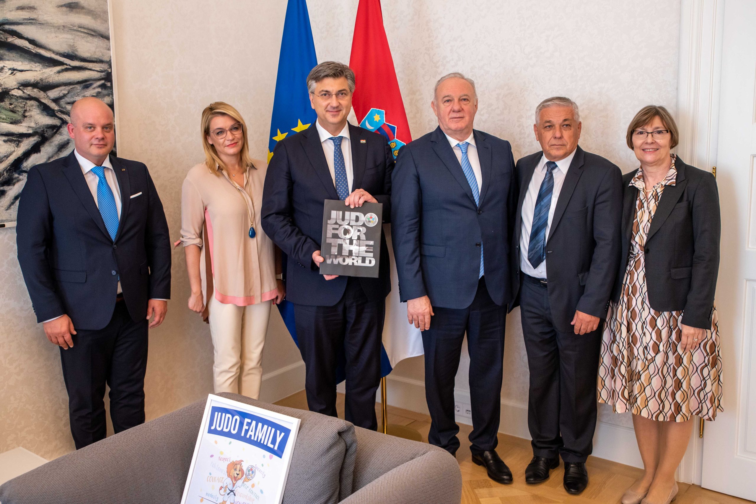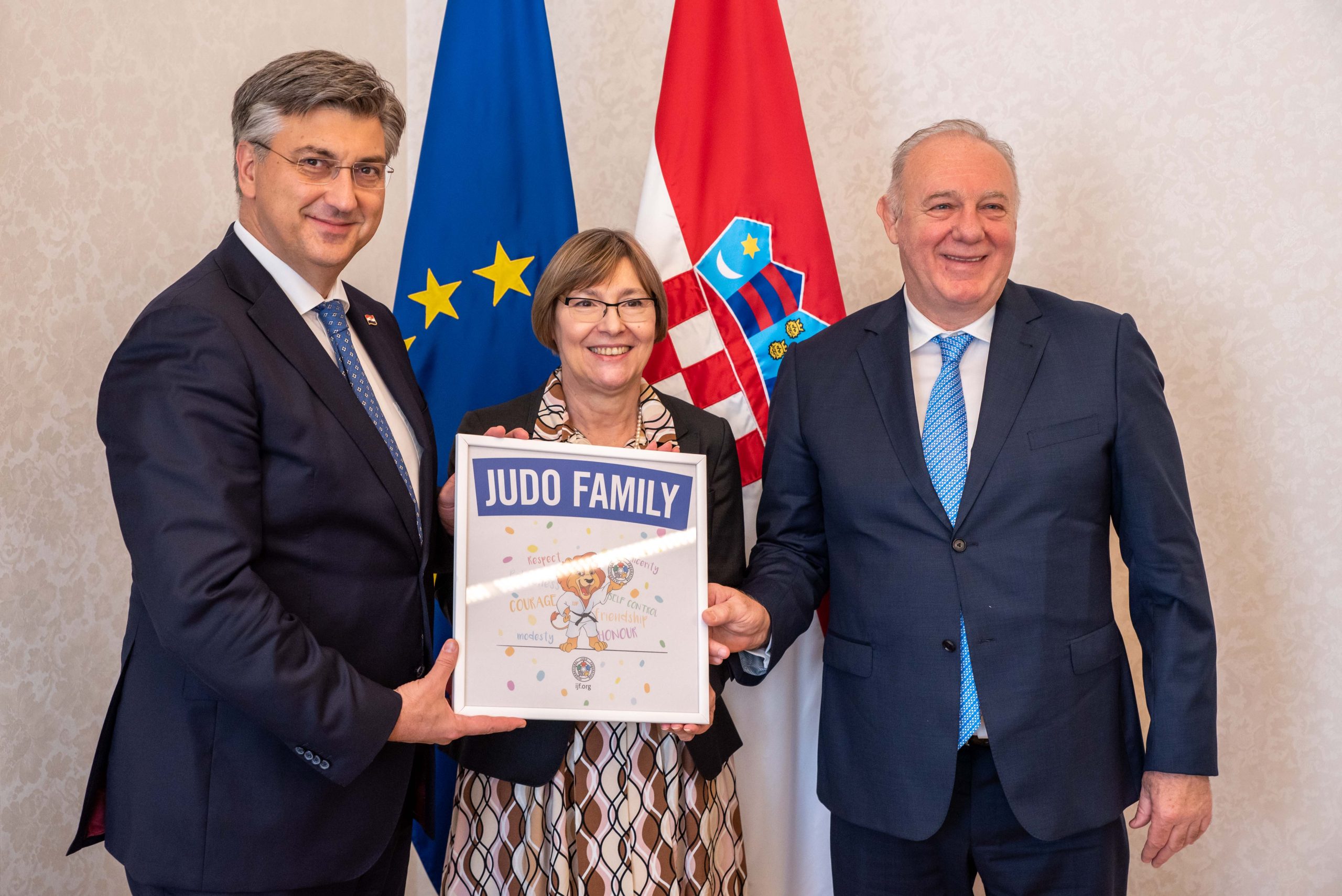 On the occasion of the IJF Grand Prix Zagreb the prime Minister of Croatia, Andrej PLENKOVIĆ received an award for the Leadership of the International Judo Federation, the European Judo Union and the Croatian Judo Federation. Along with the Prime Minister, the Minister of Tourism and Sports Dr Nikolina BRNJAC, Vice President of the International Judo Federation and President of the European Judo Union Dr László TÓTH, Vice President of the European Judo Union Hrvoje LINDI, President of the Croatian Judo Federation Dr Sanda ČORAK and Honorary President of the Croatian Judo Federation Tomislav ČULJAK were also present. This was in recognition of the Croatian federations tireless efforts to improve the economic sustainability of organising events in their country.