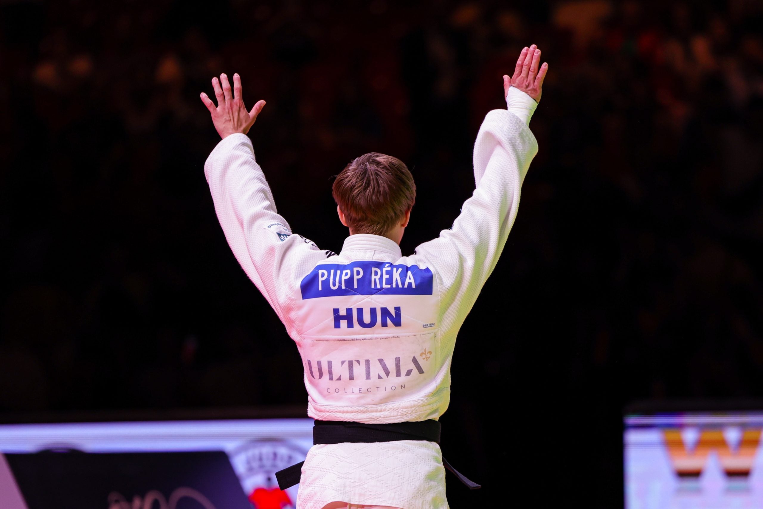 In this arena for the Hungary Grand Slam, it is staged to perfection, the backdrop for the athletes coming out to their medal contests sees them exit the very dramatic bridge arch, the lighting dimmed till they reach the tatami. All the while the crowd are cheering, horns blowing, Pupp was ready.