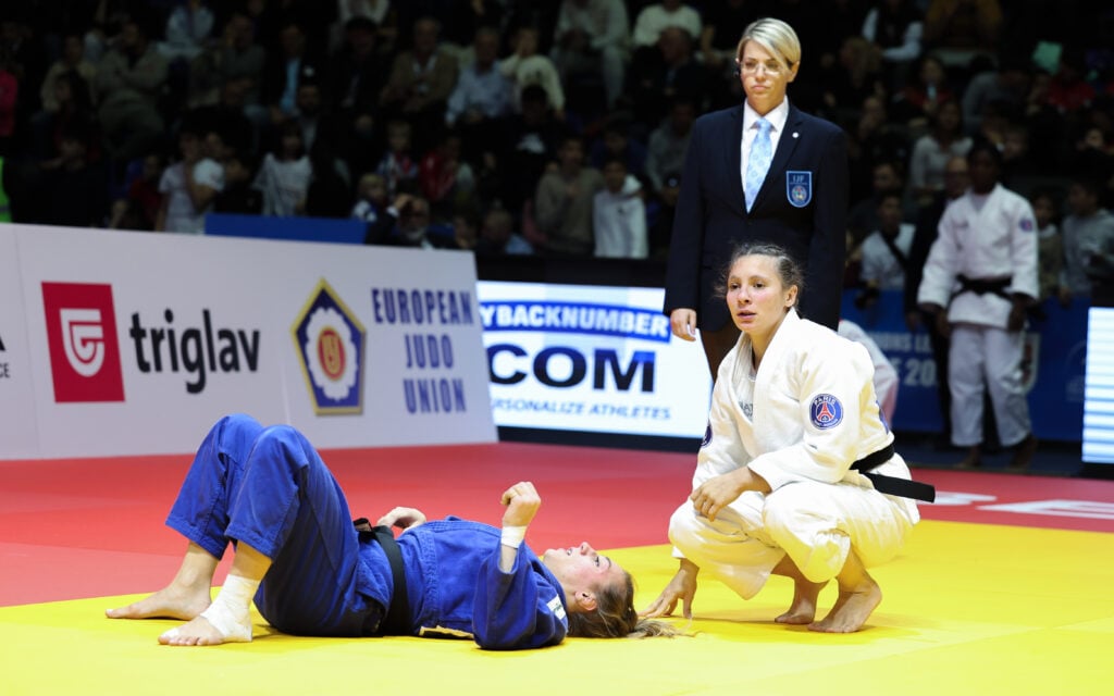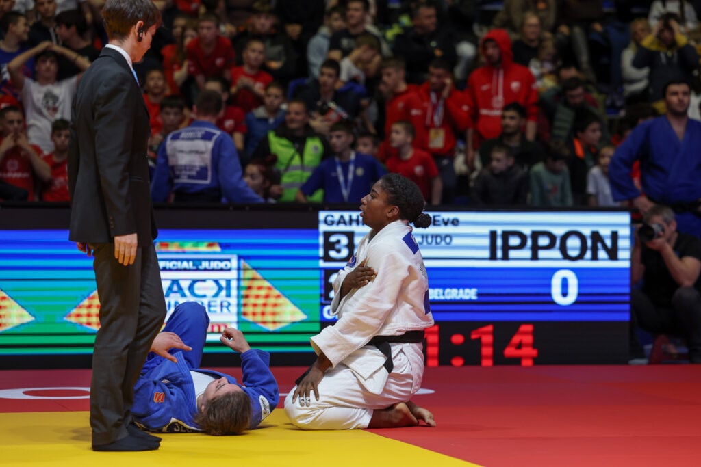The pressure was enormous as Marie-Ève Gahié (PSG) stepped onto the tatami against Ozbas Szofi (Red Star) in the -70kg bout. Was this the final contest? Would Red Star force a draw? The crowd was deafening.