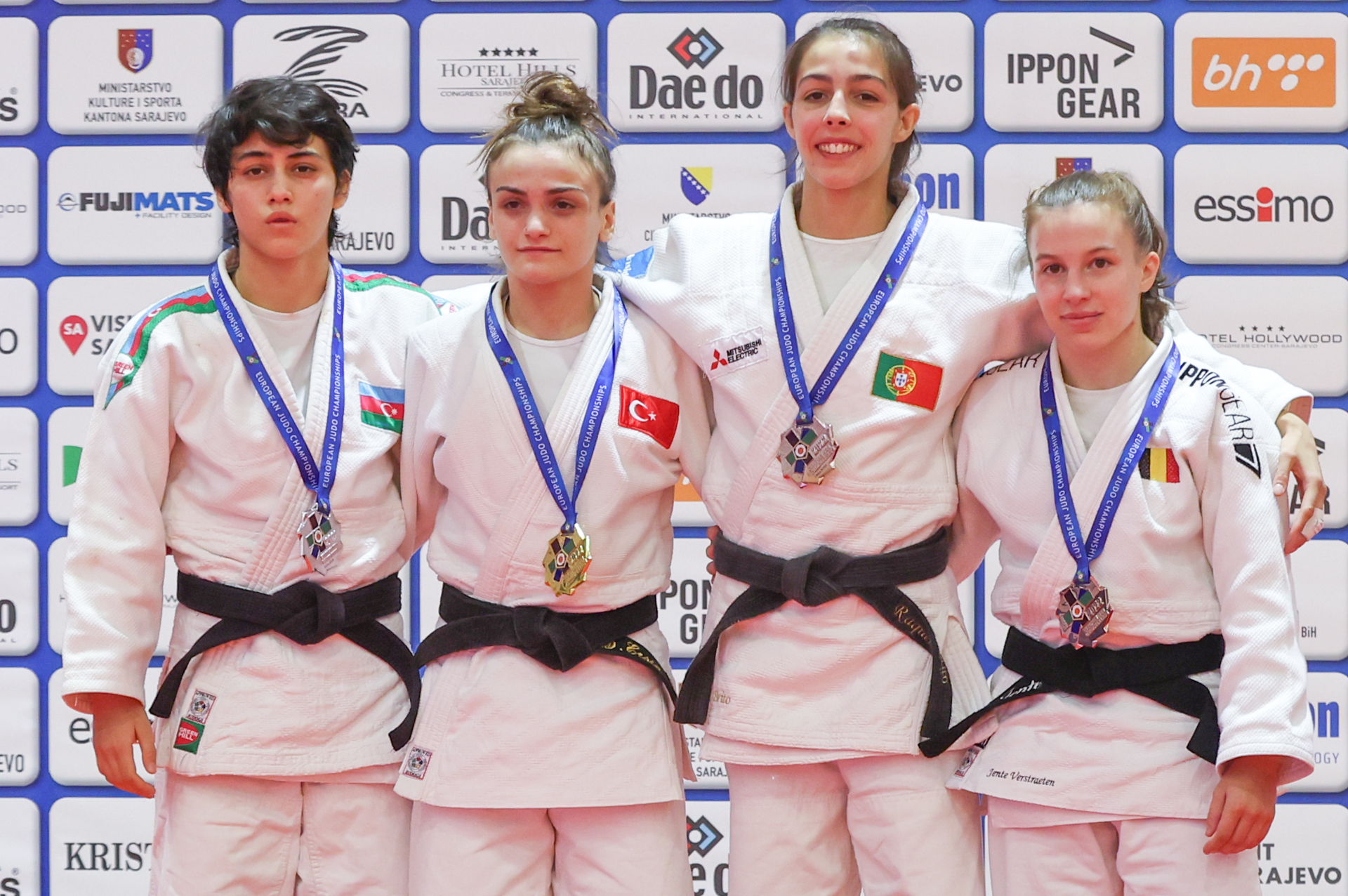 The Junior European silver medallist Ersin was first to put her score on the board but Aliyeva levelled but also picked up two shidos. It looked as if the first gold could go to Azerbaijan but Ersin managed a counter to finally see her on top of the podium.