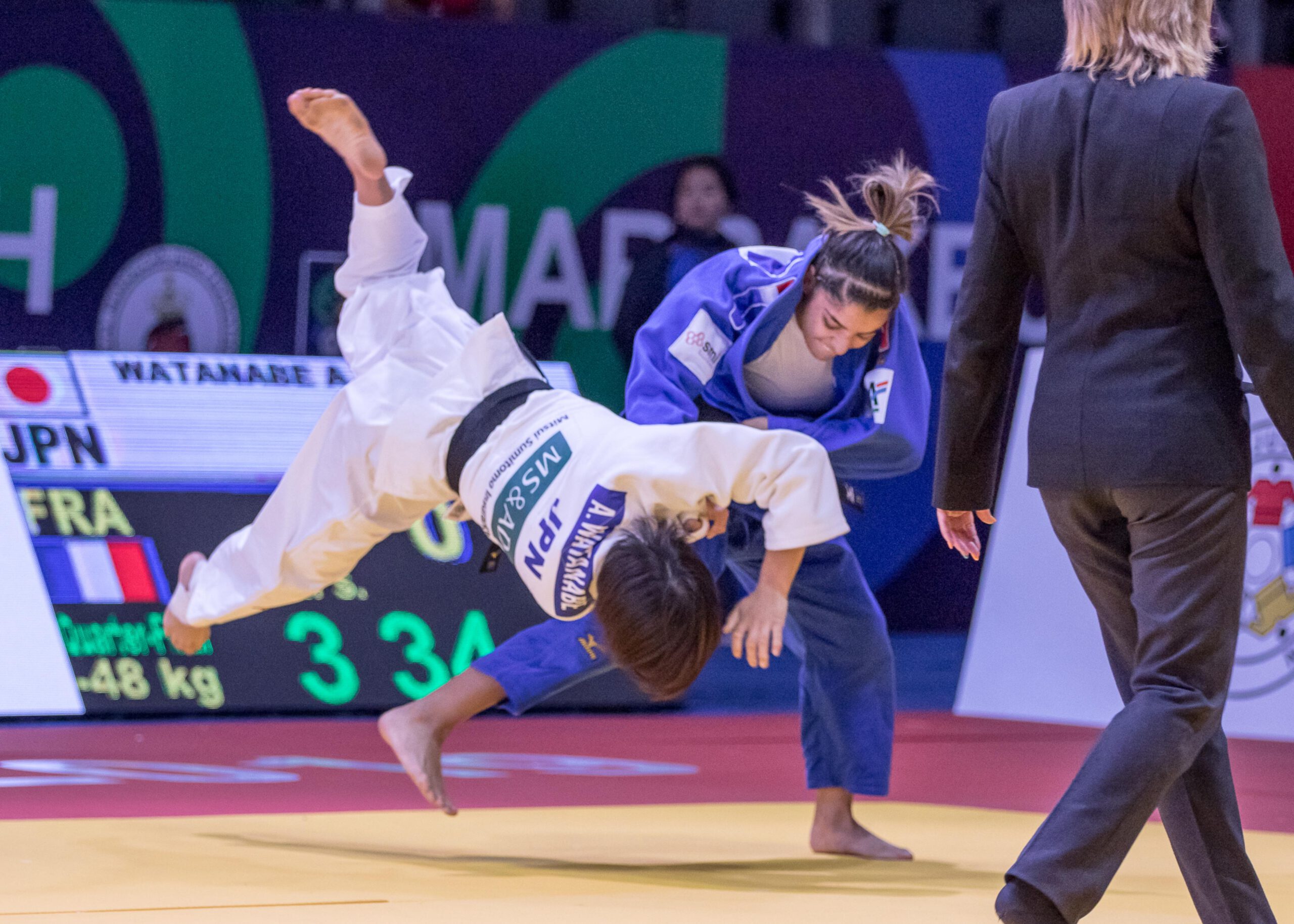 Shirine BOUKLI (FRA) managed to take another important medal in her final junior year to match her Junior European success in the -48kg category. Though a hard fought day, BOUKLI didn’t quite manage to snatch the gold medal from her Japanese opponent, KOGA Wakana, but was still elated with this tremendous achievement in Marrakech. Andrea STOJADINOV (SRB) tried to better her performance of bronze in Nassau last year but was still happy with another Junior World medal to her name as she missed out in Vantaa, defeated by todays silver medallist, BOUKLI. There is no doubting her capability though as she is still the holder of the U23 European title and has chance to defend it in Russia.