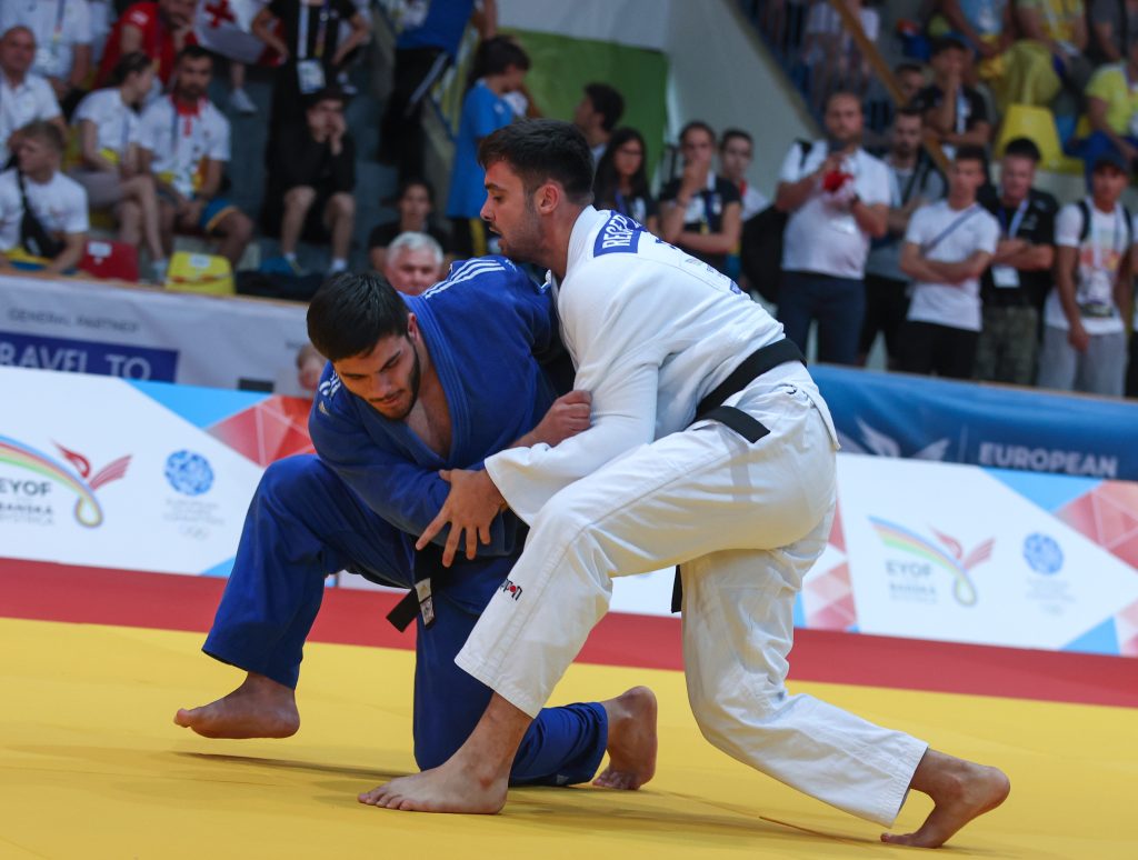 It certainly feels today that there has been a greater focus given to ne waza amongst these athletes, especially those of Ukraine as in a second final, Semchenko pulled it out of the bag and secured a hold on Lang to take the third gold medal for Ukraine in the EYOF and ensuring that they finish in second place in the medal table. It was a strong performance from Semchenko and she was celebrated by a huge Ukrainian delegation as well as an applause from the rest of the crowd.