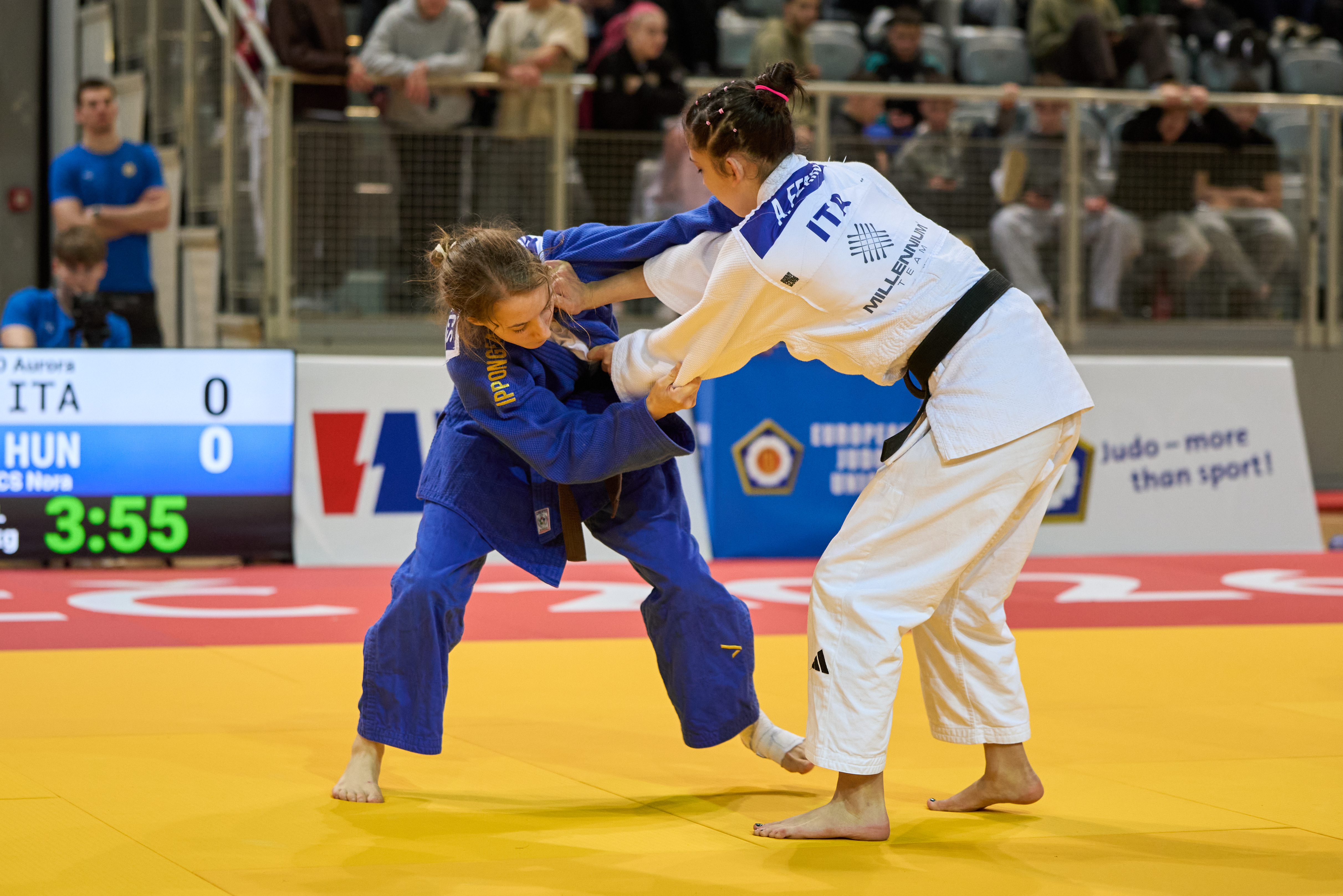 European Judo Union Sports Director Alessandro Comi congratulated the organisers on their efforts and expressed confidence in the continued high standards throughout the weekend. Competition unfolded across five tatami, with Ukraine and Italy enjoying particular success. Eleven Ukrainian and nine Italian athletes reached the final block, and in four contests athletes from the same nation faced each other for medals.