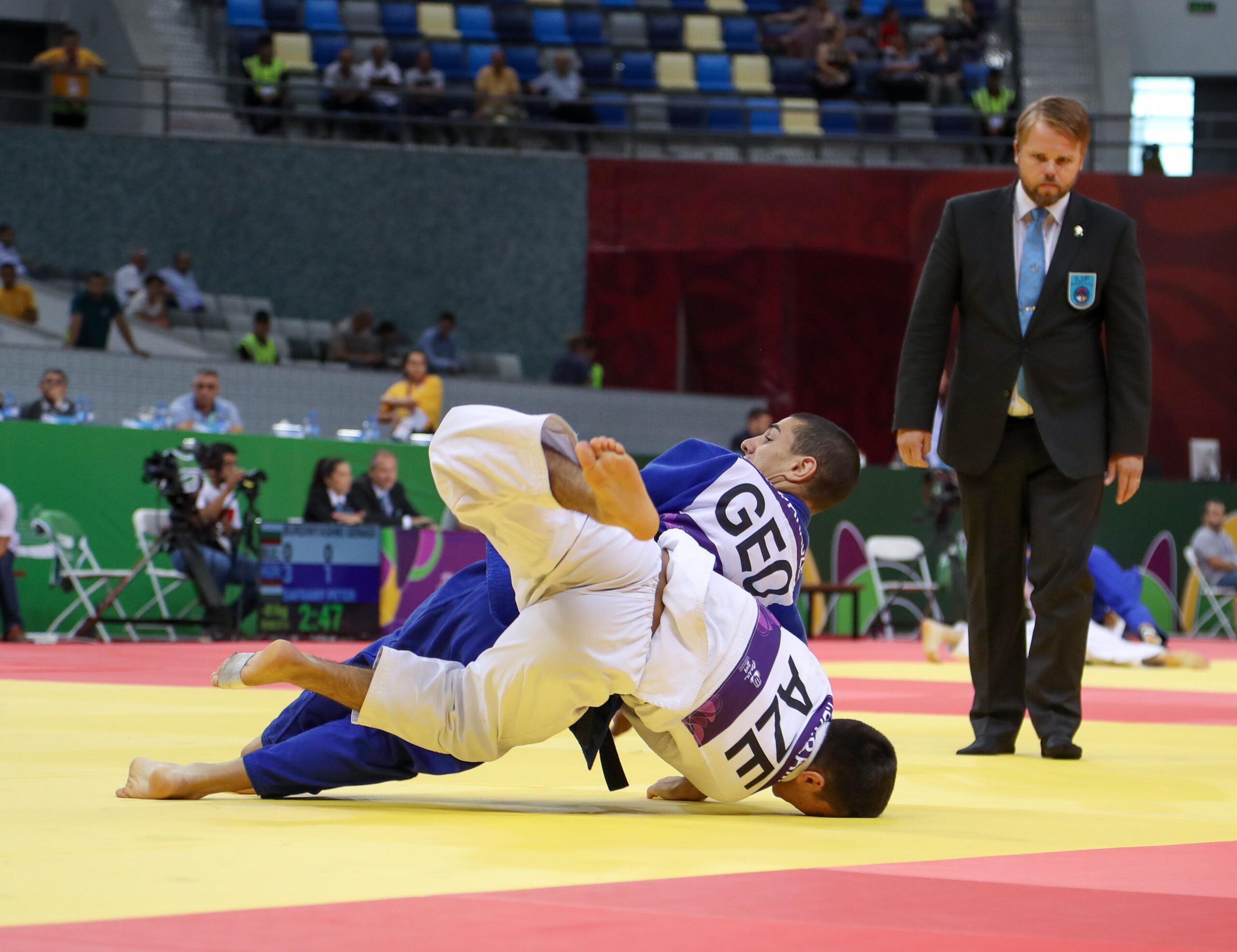 Azerbaijan were unlucky in their bid against the Georgians as the match up went to 3-3, the decider was between Kote KAPANADZE (GEO) and the EYOF gold medallist, Turan BAYRAMOV (AZE). KAPANADZE had the advantage as he had come out on top in their previous contest and once again put a waza ari on the board, enough for the Georgians to take their place against the Dutch team.