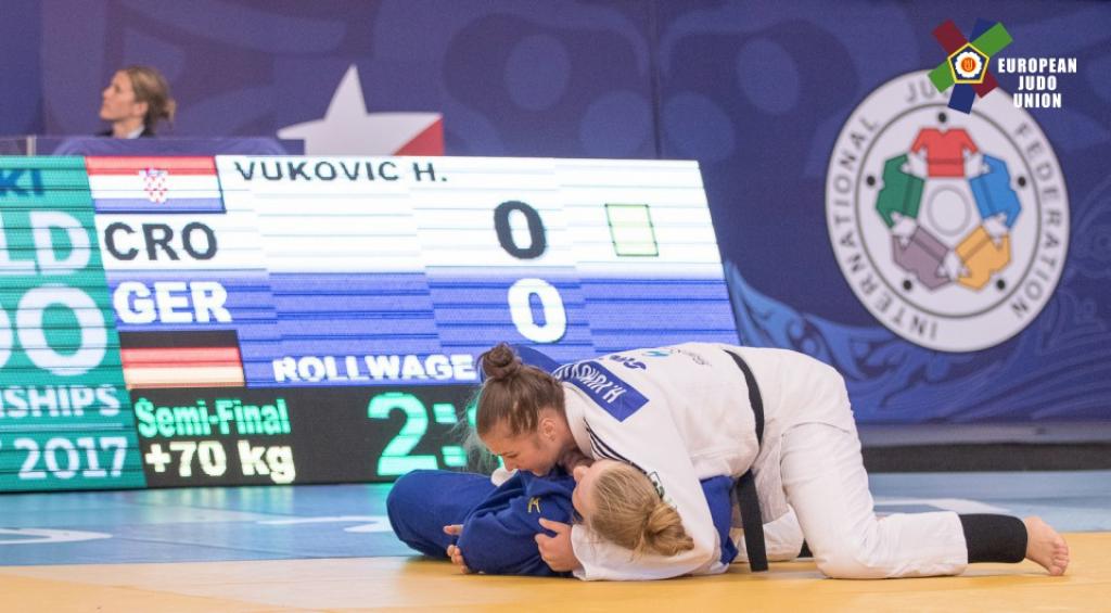 Day four of competition at the Cadet World Championships in Santiago, Chile brought success for Croatia. The day began slowly for 17-year old Vukovic who, after a first round bye, faced Karra HANNAH (BAH) the latter now coached by former world champion Amarilis Savón of Cuba. Whilst displaying a strong defence Vukovic was unable to come up with a winning score and in the end it was the three errors committed by Hannah that allowed the Croatian to advance. In the quarter final Vukovioc faced number seven seed LIN Yu-Jing (TPE). The contest went into golden score where after a little over one minute Vukovic managed to come up with a left sided uchi mata from which she scored waza ari. In the semi final Vukovic demonstrated her versatility when on the two-minute mark she threw Hanna ROLLWAGE (GER) this time with right sided uchi mata for ippon.